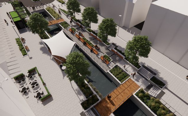 The Canal Quarter project encompasses a new public square that adds high-quality public space to the city centre, designed to maximize green infrastructure and host diverse events. The site's centrality to the city's railway infrastructure, adjacent to Queen Street railway station and a 5-minute walk from Cardiff Central, enhances its accessibility.